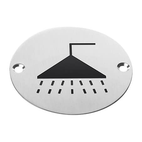 The Shower symbol toilet sign Is a standard door sign with the denoted character logo displayed on a circular plate with two fixing holes. Available in SSS, PB & SAA & it provides a classic and high-quality appearance.