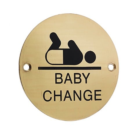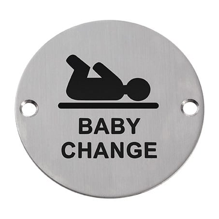 The Baby Change symbol toilet sign Is a standard door sign with the denoted character logo displayed on a circular plate with two fixing holes. Available in SSS, PB & SAA & it provides a classic and high-quality appearance.
