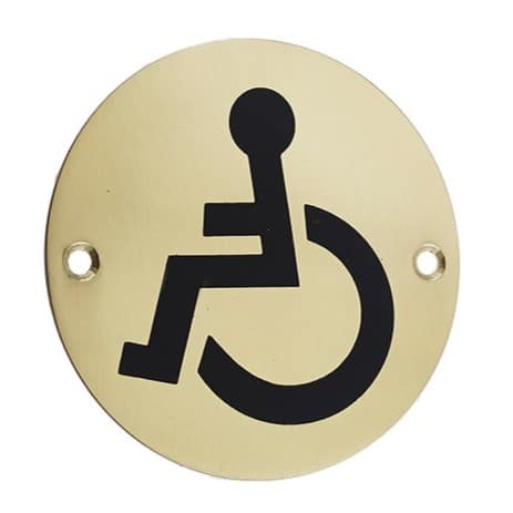 The Disabled symbol toilet sign Is a standard door sign with the denoted character logo displayed on a circular plate with two fixing holes. Available in SSS, PB & SAA & it provides a classic and high-quality appearance.